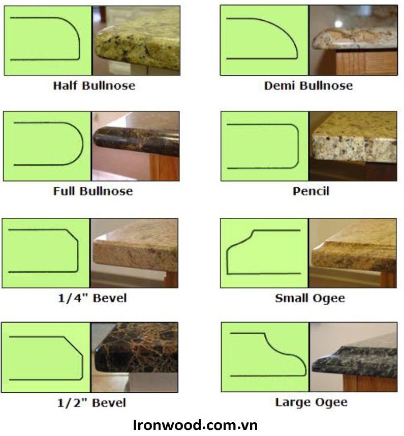- Các loại đá gia công: đá nhân tạo, đá cẩm thạch, đá vi tinh thể