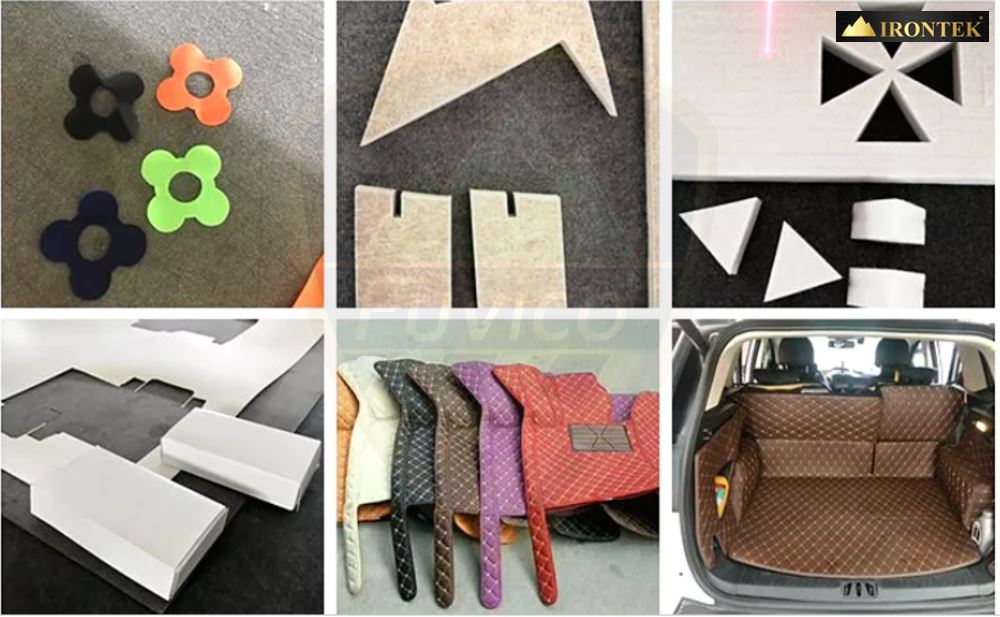 - Cắt da, vải, mút xốp, da PU, giấy, tấm carton, vật liệu mềm...(cần đổi đầu dao cắt)